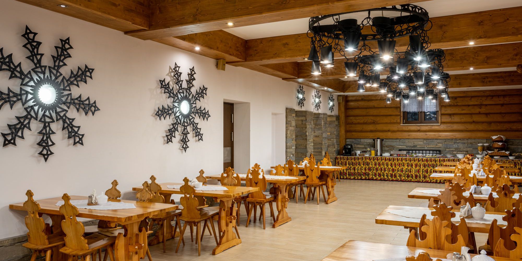 W śniadaniowym menu znajdują się wędliny, sery, pasty, jogurty, sałatki, regionalne specjały, słodkie przekąski takie jak racuchy i naleśniki, owoce oraz dania z menu śniadaniowego. Nie zapominamy również o świeżym i chrupiącym pieczywie z zaprzyjaźnionej piekarni.